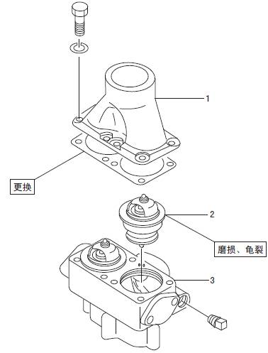 1 三菱S6R發(fā)動機恒溫器端蓋 2 三菱S6R發(fā)動機恒溫器 3 三菱S6R發(fā)動機恒溫器殼體
