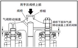 1.6 測(cè)量閥橋下面和三菱S6R柴油發(fā)動(dòng)機(jī)氣閥門轉(zhuǎn)動(dòng)端蓋上面的間隙