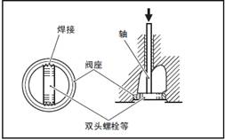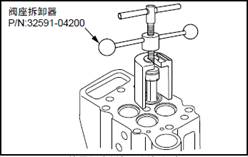 將螺栓等焊接在閥座上,用軸棒從三菱S6R柴油發(fā)動(dòng)機(jī)氣缸頭上面插入三菱S6R柴油發(fā)動(dòng)機(jī)氣閥門導(dǎo)管孔內(nèi)打擊,拆出閥座。