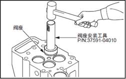(3) 用專用安裝工具將閥座安裝在三菱S6R柴油發(fā)動(dòng)機(jī)氣缸頭上。