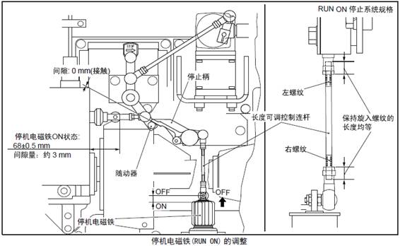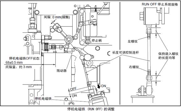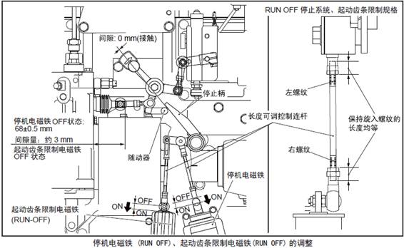 3.3.3 停機(jī)電磁鐵(RUN OFF)、起動(dòng)齒條限制電磁鐵(RUN OFF) 的調(diào)整