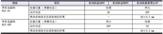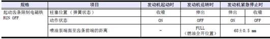 確認(rèn)發(fā)動(dòng)機(jī)起動(dòng)時(shí)、運(yùn)轉(zhuǎn)時(shí)、緊急停止時(shí)的各電磁鐵的動(dòng)作和噴油泵齒條的位置。