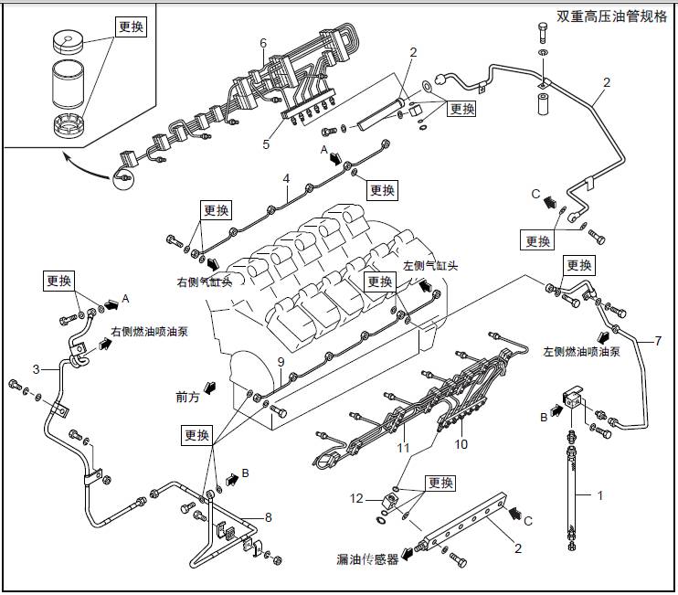 三菱S12柴油發(fā)動機燃油系統(tǒng)的拆卸、檢測