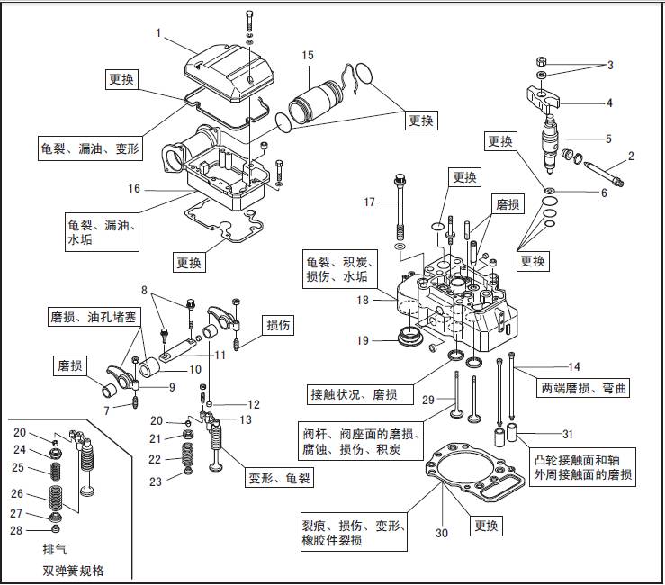 24 氣閥轉(zhuǎn)動端蓋(24 ~ 28 排氣雙三菱R16柴油發(fā)動機氣閥彈簧規(guī)格)