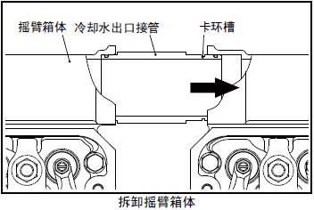 (2) 將冷卻水出口接管朝卡環(huán)槽側(cè)移動,使其和對接的三菱R16柴油發(fā)動機搖臂箱體分離。