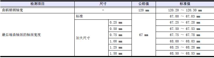 (2) 測量曲柄銷和最后端三菱R16柴油發(fā)動(dòng)機(jī)曲軸頸的軸頸寬度。根據(jù)最后端三菱R16柴油發(fā)動(dòng)機(jī)曲軸頸的軸頸寬度的磨損程度使用加大尺寸三菱R16柴油發(fā)動(dòng)機(jī)推力片時(shí),按照加大尺寸三菱R16柴油發(fā)動(dòng)機(jī)推力片的規(guī)格研磨三菱R16柴油發(fā)動(dòng)機(jī)曲軸。