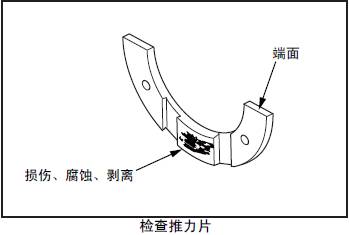 檢查三菱R16柴油發(fā)動(dòng)機(jī)推力片的接觸面、背面和端面,如有接觸不良、滑動(dòng)損傷、腐蝕、異物嵌入等異常時(shí)更換新品。