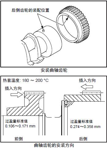 注: 通過加熱三菱R16柴油發(fā)動(dòng)機(jī)曲軸齒輪拆出時(shí),加熱溫度應(yīng)在180ºC以下。