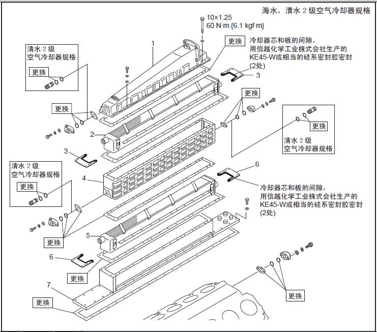三菱S16柴油機(jī)空氣冷卻器的解體、檢修、組裝