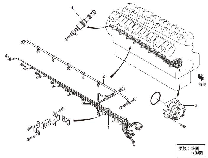(3) 確認(rèn)頭部墊圈的安裝狀態(tài),如有變形或損傷時(shí),更換預(yù)供油泵。