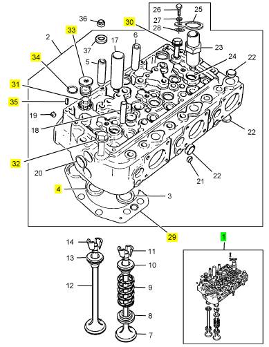 1 CV19938 4 CV24521 CYLINDER HEAD KIT