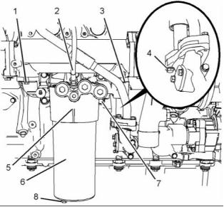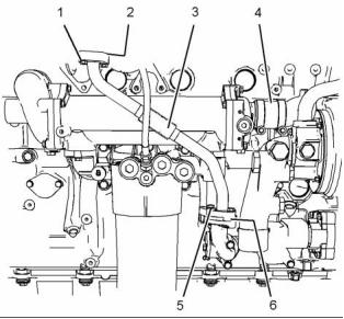 9. Install bolts (1) and (3). Tighten the bolts to a