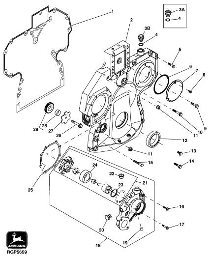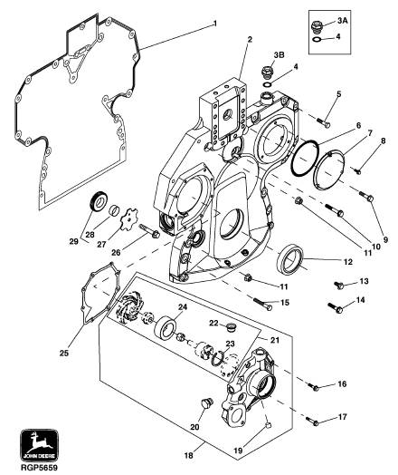 John Deere約翰迪爾強(qiáng)鹿柴油發(fā)動(dòng)機(jī)正時(shí)齒輪蓋、水泵、曲軸下惰輪零件圖冊(cè)