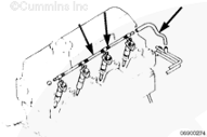 拆卸每個氣缸上的噴嘴支座總成。 從每個氣缸上拆下噴油器。參考步驟 006-026 。 用防粘結(jié)復(fù)合劑(零件號 3824879)或等同物潤滑套筒的密封唇部。 安裝噴油器、密封套、新銅墊圈(只使用一個墊圈)和噴油器固定卡箍。參考步驟 006-026 。 在墊圈和噴油器之間涂一薄層清潔的 15W-40 機(jī)油有助于在安裝過程中保持墊圈的位置。