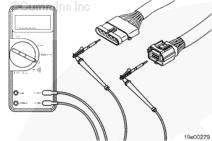 將測(cè)試導(dǎo)線連接到萬用表表筆。將與測(cè)試導(dǎo)線連接的萬用表另一支表筆插入 OEM 線束接頭上的開關(guān)回路導(dǎo)線。測(cè)量電阻。