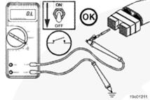 將開關(guān)置于斷開位置并測(cè)量電阻。萬用表必須顯示閉路(10 歐姆或更?。?。如果電路沒有閉合,則開關(guān)故障。關(guān)于更換步驟,參考 OEM 故障判斷和排除手冊(cè)。如果電阻值正確,必須檢查開關(guān)是否仍舊存在對(duì)地短路。
