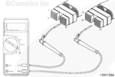 將一根測(cè)試導(dǎo)線插入到 OEM 線束接頭的變速箱換檔調(diào)節(jié)器信號(hào)觸針中。用萬(wàn)用表的另一根表筆接觸康明斯ISB5.9 G CM2180 發(fā)動(dòng)機(jī)缸體接地。測(cè)量電阻。