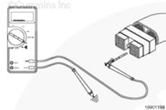 • 從 ECM 上斷開(kāi)康明斯ISB5.9 G CM2180 發(fā)動(dòng)機(jī)線束 ECM 1號(hào)接頭和 2號(hào)接頭。從康明斯ISB5.9 G CM2180 發(fā)動(dòng)機(jī)線束上斷開(kāi)爆震傳感器。設(shè)置萬(wàn)用表以便測(cè)量電阻。