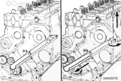 安裝止推墊圈,按圖示對正正時標(biāo)記,完成凸輪軸的安裝。