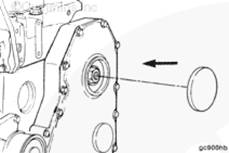 注: 此時不要拆下機(jī)油油封中的塑料密封導(dǎo)向工具。使用塑料油封導(dǎo)向工具引導(dǎo)曲軸上的油封。