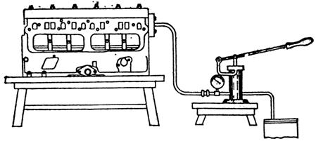檢驗(yàn)氣缸體和的裂紋,通常采用水壓試驗(yàn)方法進(jìn)行。檢驗(yàn)時(shí),用專(zhuān)用的蓋板將水道口密封。把水壓機(jī)水管接在氣缸體的進(jìn)水口,然后將水壓入水套,要求在294~392kPa的壓力下保持5min,不應(yīng)有滲透現(xiàn)象。如果沒(méi)有水壓試驗(yàn)設(shè)備,也可以將汽油或煤油注入氣缸體和氣缸蓋水套內(nèi),經(jīng)半小時(shí)以后,檢視有無(wú)滲透現(xiàn)象。