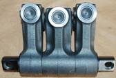 6.搖臂:構(gòu)成杠桿傳遞運(yùn)動(dòng),現(xiàn)已采用新式的球面滑動(dòng)平板搖臂,消除了與橋式壓板間的磨損,設(shè)有調(diào)整螺釘和鎖緊螺母;分為進(jìn)氣搖臂 (1.3.5與2.4.6缸不相同,裝配時(shí)需選擇),|噴油搖臂、排氣搖臂 (1.3.5與2.4.6缸不相同,裝配時(shí)需選擇),搖臂軸裝配時(shí)有選擇性,F(xiàn)ront應(yīng)朝向發(fā)動(dòng)機(jī)前端,Rear應(yīng)朝發(fā)動(dòng)機(jī)后端,有“V”標(biāo)示應(yīng)朝下。