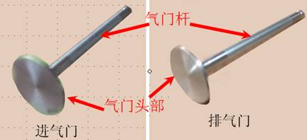 氣門分為進(jìn)氣門和排氣門,分別控制進(jìn)氣和排氣,結(jié)構(gòu)相同,進(jìn)氣門頭比排氣門頭大。氣門由氣門頭和氣門桿兩部分構(gòu)成。氣門頭為圓盤形,氣門桿為圓柱形。氣門桿的尾部成錐形,用以安裝鎖片。氣門與氣門座共同形成密封面來密封氣缸內(nèi)氣體。