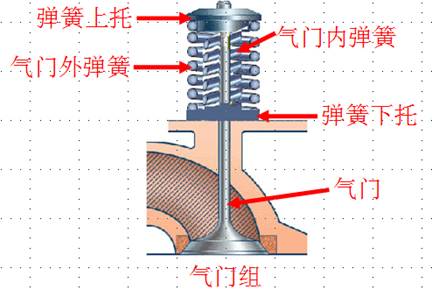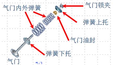 2、氣門組:氣門組包括氣門、氣門座、氣門導(dǎo)管、氣門彈簧、氣門鎖夾、氣門油封等零件。