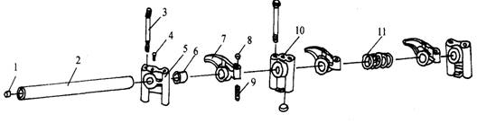 3:為防止搖臂在工作時(shí)發(fā)生軸向移動,搖臂軸上兩搖臂之間裝有搖臂軸彈簧。