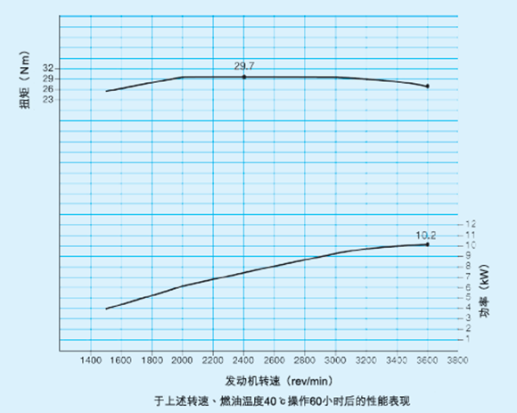 發(fā)動機(jī)3600 rpm時,功率達(dá)10.2 kW,13.7 bhp
