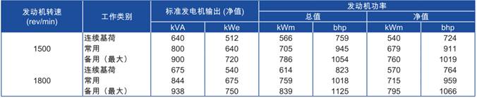 4000系列4006-23TAG2A柴油發(fā)動(dòng)機(jī),功率:1500rev/minErt685 kWm 1800rev/min 715 kWm