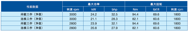 3000 rpm時,功率達24 kW,32.5 bhp