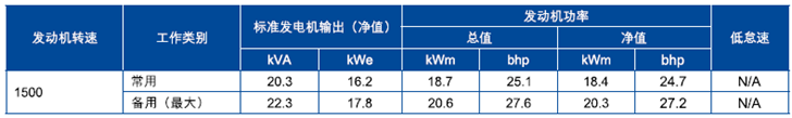 注:上表所有額定功率數(shù)據(jù)均為IS0 8528/1、IS0 3046/11986、BS 5514/1條件下的發(fā)動(dòng)機(jī)性能。在其他條件下工作時(shí),性能可能降低。有關(guān)上述條件以外工作的數(shù)據(jù),請(qǐng)向Perkins公司咨詢。Perkins提供的發(fā)電機(jī)輸出功率為標(biāo)準(zhǔn)數(shù)據(jù),并根據(jù)標(biāo)準(zhǔn)交流發(fā)電機(jī)效率及0 8功率因數(shù)(cos. e)確定。燃料規(guī)格:BS 2869: Part 2 1998 Class A2或ASTM D975 D2額定功率定義:常用功率:取代主電網(wǎng)時(shí),以可變載荷模式工作下可提供的功率。每工作12小時(shí)可允許1小時(shí)1 00r6過載工作。備用功率(最大):于主電網(wǎng)出現(xiàn)故障時(shí),以可變載荷模式工作下可提供的功率。不允許過載工作。