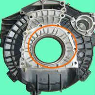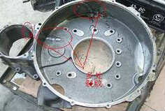造成此故障的現(xiàn)象:發(fā)動機的飛輪殼開裂(如下圖所示),有時表現(xiàn)的現(xiàn)象為發(fā)動機后部漏油,進(jìn)一步觀察,主要原因是飛輪殼開裂所致。 造成此故障的原因分析:主要原因是整車傳動系統(tǒng)振動過大,導(dǎo)致飛輪殼被震裂 此故障的維修解決方法:更換飛輪殼、整車傳動軸
