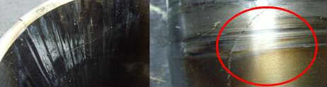 造成此故障的現(xiàn)象:發(fā)動機付水箱報警,油底殼中有防凍液,第一缸缸套與缸體結(jié)合部有防凍液漏出。 造成此故障的原因分析:缸套裂紋導(dǎo)致防凍液漏進(jìn)油底殼形成油水混合,發(fā)動機缺水高溫形成拉缸故障 。 此故障的維修解決方法:更換活塞與缸套