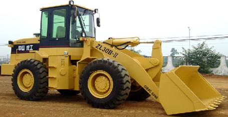 裝載機的制動系統(tǒng)為氣頂油盤式制動,當制動效果不佳時,可以先做常規(guī)檢查,具體內(nèi)容有油制動總泵及管路是否漏油、氣制動總泵過氣量大小、加力罐活塞是否卡滯、油制動總泵的皮碗、皮圈是否損壞。如果常規(guī)檢查找不到故障的原因,可以用定量分析的方法,先確定故障所在的部位,分段查找。通過計算,當制動氣壓為6.5 kg/cm2時,油制動管路的壓力應為100kg/cm2,將制動分泵的放氣螺絲拆除,連接一塊壓力表,當制動氣壓為6.5kg/cm2時,踏下制動踏板,測量油制動管路的壓力,若壓力在100kg/cm2左右,說明故障不在制動總泵,故障原因應是部分制動分泵活塞卡滯,制動分泵不能全部起作用,因而制動效果不佳。若壓力不足,并且最高壓力是恒值,則可以確定制動總泵的活塞、皮碗或皮圈密封不良,總泵內(nèi)部有泄漏。若連續(xù)踏下制動踏板3 次,制動管路的壓力一次比一次高,并且最高壓力達不到100kg/cm2,此故障的原因有兩個:(1)加力罐推桿與油制動總泵活塞的間隙過大。其正常值應為0.5mm,間隙過大,減少了活塞的推油行程,使制動液補助量不足。(2)油制動總泵的密封不良,制動管路里的制動液少量回到總泵,使油泵的推油量無法補足。