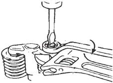 不要在松開氣門橋的狀態(tài)下松開或鎖緊氣門調(diào)整螺栓螺母。用扳手固定氣門橋防止氣門桿彎曲。然后松開氣門橋調(diào)整螺栓的螺母。