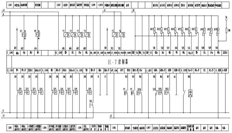 電控系統(tǒng):一臺(tái)EPS控制器或者一臺(tái)EC-7控制器,5個(gè)壓力傳感器、9個(gè)壓力開關(guān)、2個(gè)比例閥、4個(gè)電磁閥、1個(gè)步進(jìn)電機(jī)驅(qū)動(dòng)器、1個(gè)油門旋鈕傳感器、1個(gè)油門位置傳感器、1個(gè)水溫傳感器、1個(gè)柴油油位傳感器、1個(gè)機(jī)油壓力傳感器、1個(gè)發(fā)動(dòng)機(jī)轉(zhuǎn)速傳感器(脈沖量)。其中EC-7控制器包含一塊EC-7綜合轉(zhuǎn)換板,實(shí)現(xiàn)通信規(guī)約轉(zhuǎn)換、發(fā)動(dòng)機(jī)頻率匹配等功能。