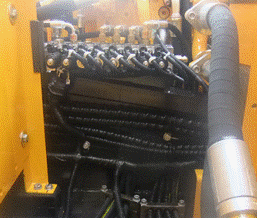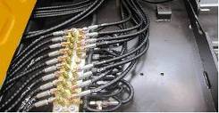 9個先導壓力傳感器位置由主閥上面移到駕駛室后面,如圖所示。由于先導管路順序發(fā)生了變化,所以電氣系統(tǒng)9個壓力傳感器線束走向和連接順序也進行變化,先導線束從左側立板處分出,直接拉到先導閥塊處。但是同樣保證每個動作壓力傳感器信號號碼和C8M一樣,