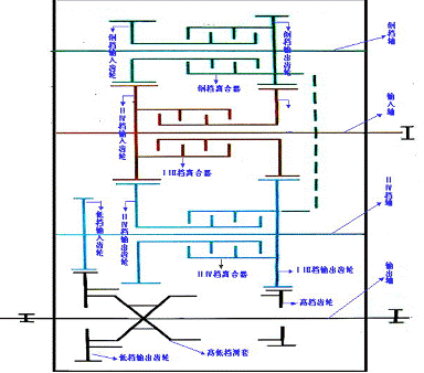 變速箱型式: 三前三后、動(dòng)力換檔、定軸結(jié)構(gòu)