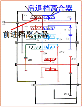 輸入→ Z1→ Z7→ Z5→ Z9→ Z11→ Z12→ 前后橋輸出。
