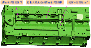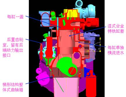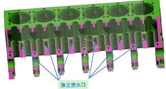 冷卻水采用每缸單獨進水的橫流結(jié)構(gòu),保證各缸冷卻均勻 。