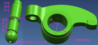 潤滑油從推桿上到調(diào)整螺釘,再經(jīng)過調(diào)整螺釘上到搖臂調(diào)整螺釘孔,然后進入搖臂的搖臂軸孔,潤滑搖臂軸,構(gòu)思巧妙,解決缸蓋不好上油的問題。