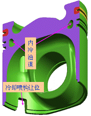 內(nèi)冷油道活塞,對應大流量冷卻噴嘴,降低熱負荷,提高可靠性。