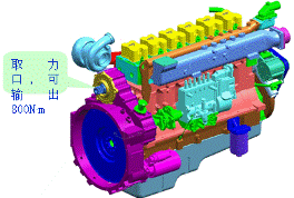 ¢ 配套適應性高:采用后置齒輪室,使發(fā)動機更窄,可以適合國內(nèi)各種重型車底盤。