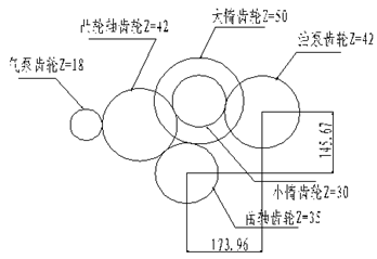 大惰齒輪與小惰齒輪為同軸,分為兩層,大惰齒輪與曲軸齒輪和液壓齒輪嚙合