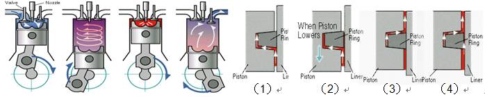 往復(fù)活塞式發(fā)動機運轉(zhuǎn)時活塞環(huán)會出現(xiàn)“泵油”現(xiàn)象,雖然現(xiàn)階段的發(fā)動機活塞環(huán)采用的“梯形環(huán)”和“扭曲環(huán)”可減少泵油現(xiàn)象,但不可避免的仍然會有少量的機油進入到燃燒室內(nèi)參與燃燒。