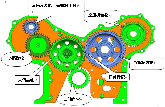 電控柴油發(fā)動機齒輪間隙及記號對正: