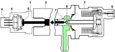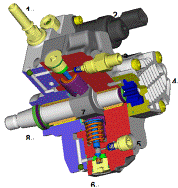 - 當共軌壓力過大,壓力控制閥打開,一部分燃油經回油管路流回油箱。