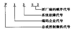 原廠編碼順序代號由兩位阿拉伯?dāng)?shù)字組成,它是指各元件故障代碼,不同編號有不同的故障含義。